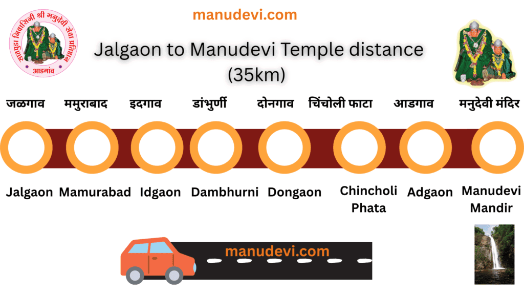 - Jalgaon to direct Manudevi Temple distance is 35km.